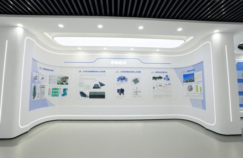 頂和地面造型統(tǒng)一,白色吊頂和灰色橡膠地面,黑色方鋼吊頂和灰色橡膠地面相互呼應(yīng),統(tǒng)一中富有變化,變化中又蘊(yùn)含統(tǒng)一,使整個(gè)展廳科技意境深遠(yuǎn)悠長(zhǎng)。